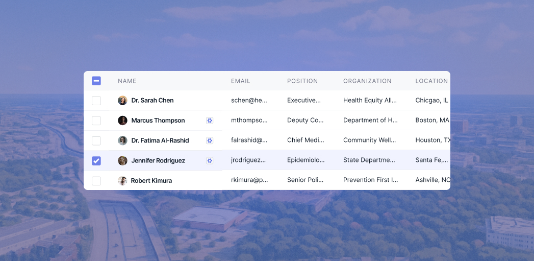 Government teams work across sprawling ecosystems of agencies, providers, and partners, but contact lists are scattered across inboxes and spreadsheets, and always out of date. Roundtable’s CRM is purpose-built for government, allowing teams to bring every person, partner, and program into one connected view. With it, teams can coordinate outreach to the working groups, committees, and service providers that drive the mission.