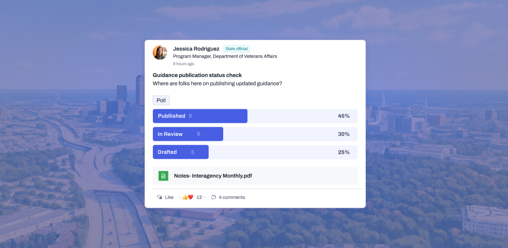 Gathering input from distributed networks used to mean scheduling another meeting or sending a survey that disappears into inboxes. We built polls so teams can quickly collect feedback and input across every partner and organization — without the overhead.